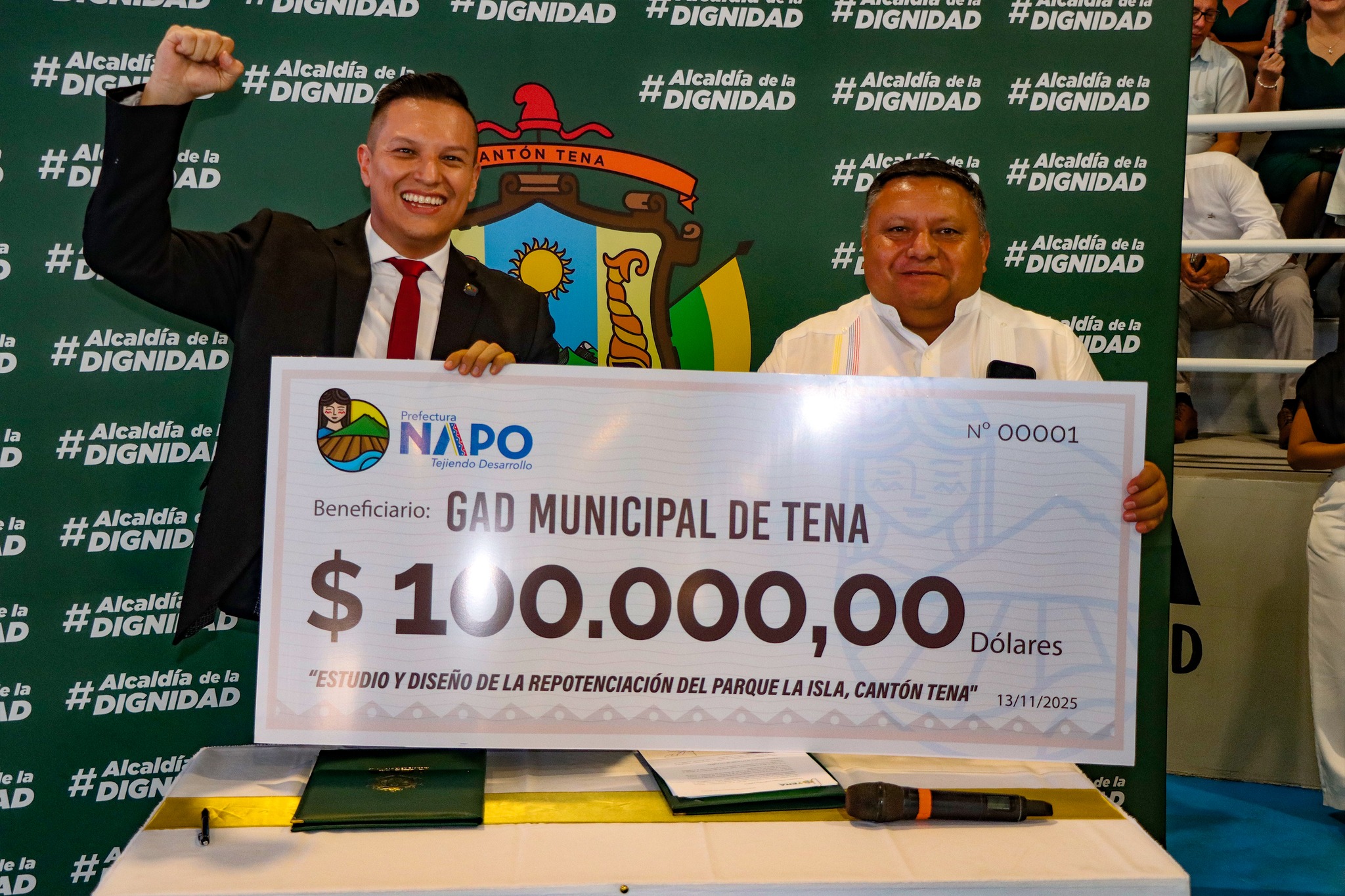 En el marco de la Sesión Solemne, Tena celebró un importante hito para su desarrollo: la firma del Convenio de Transferencia y Seguimiento de Recursos para la ejecución del proyecto “Sistema de Alcantarillado Sanitario y Plantas de Tratamiento para los barrios del sur de Tena”, a través de la Secretaría Técnica de la Circunscripción Territorial Especial Amazónica (CTEA).